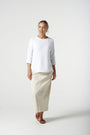 Our Sorbet 3/4 Sleeve Raglan Knit in orange is crafted from a breathable, cotton textured knit. With its relaxed fit and fresh sorbet-inspired hue, it’s the perfect pop of colour for layering across the seasons over linen pants, skirts or jeans.