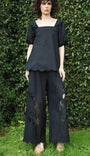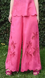 Step into summer style with the City Sprints Pant—a playful wardrobe essential that blends comfort with tropical flair. Featuring an embroidered palm cutout and charming scalloped hemline, these pants bring instant personality to your seasonal rotation. The cotton-linen blend 'Clash of the Textures' fabric keeps you cool and breathable, while the elasticated waistband and generously wide leg ensure all-day comfort. Practical side pockets add functionality to the fun.