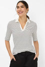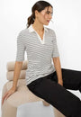The Brax Cleo Tops' figure-hugging fit and open polo collar bring a sporty charm, while the striped pattern adds a fresh, modern twist. Crafted from a soft cotton blend with stretch, it keeps you comfortable all day long. The finely textured rib detail gives it a subtle touch of classy style.