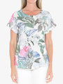 Embrace your wild side with the Dusk Jungle Tee. This playful top features a vibrant tropical print that brings a splash of adventure to your everyday look. Its lightweight fabric and relaxed fit make it effortlessly comfortable—perfect for those easygoing days. With a simple slip-on design, round neckline, and breezy short sleeves, this tee keeps things cool and casual with a fun jungle twist.