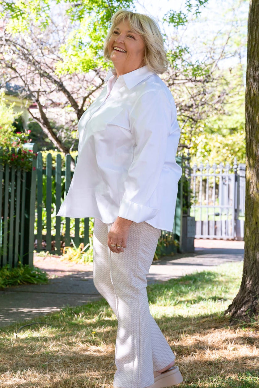 Introducing the Malou S Pant, crafted with comfort in mind. Made with a feel-good stretch fabric in a stylish stone and white brick pattern, these pants are perfect for both casual and active activities. Featuring invisible zipped pockets in the front and set-in pockets on the back, and gently tapered for a flattering fit. Pull-on design for ease and convenience.