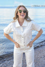 The 'Perfectly Preppy' jacket adds a touch of glamour to everyday dressing with sparkling diamantes throughout. Its cropped and boxy silhouette is perfect for layering over dresses or pairing with the 'Sparkle Cake' jeans for a matching and show-stopping look.