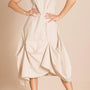 Step into style with the Pima Origami Dress, a sleeveless, flowy mid-length design in a soft almond cotton hue. Its relaxed yet edgy silhouette lets you move freely while making a chic statement.