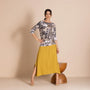 Featuring an original Megan Salmon print, this playful top flaunts a boat neckline with a neat faced neckband and charming three-quarter sleeves. Its straight silhouette with side splits adds a touch of ease and movement, while the hip-length cut ensures it pairs perfectly with skirts or trousers.