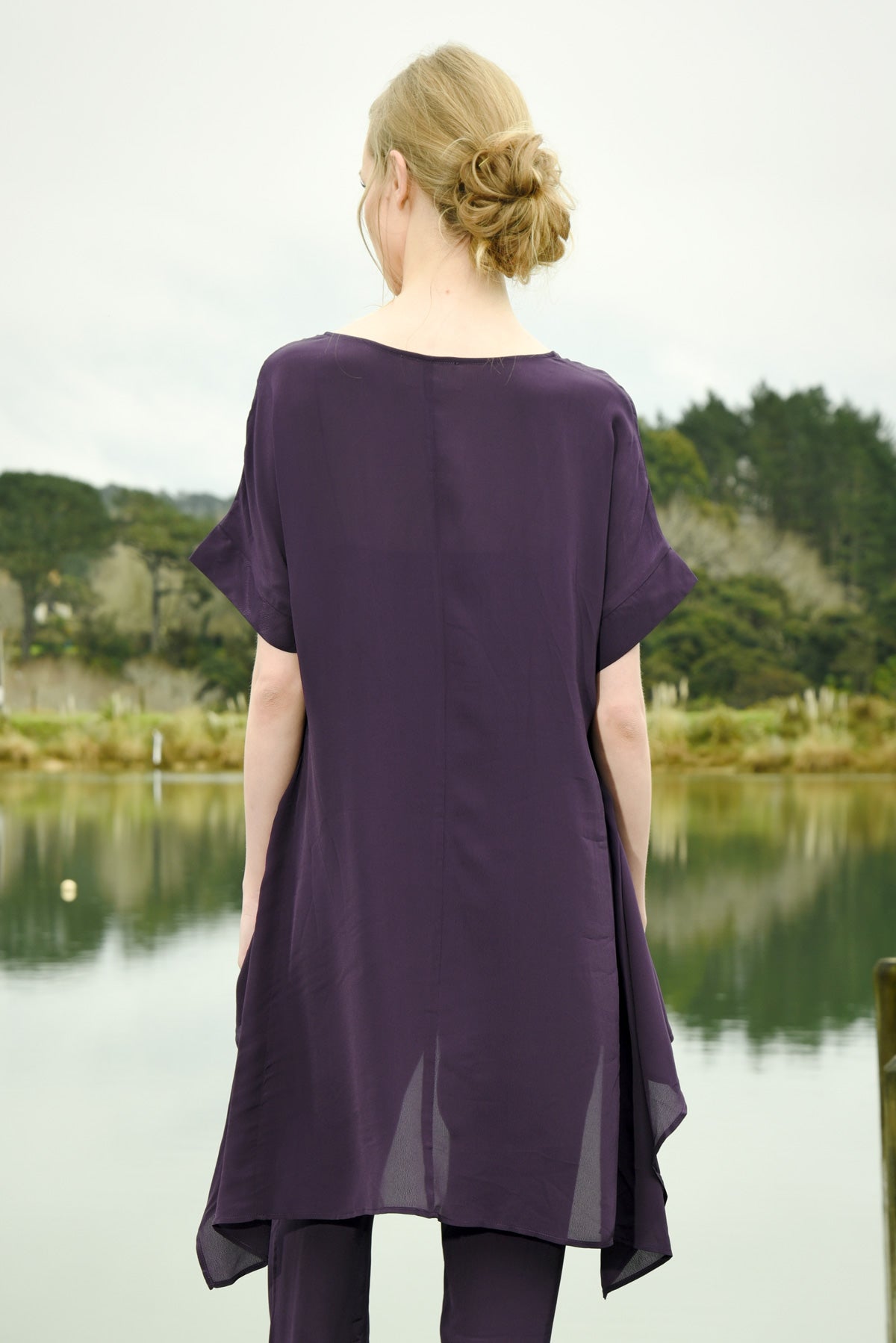 Integrate some fabulous layering pieces to your everyday wardrobe with the ‘Still Waters Top’. Crafted in the wonderfully draped ‘Champagne Sheers’ viscose crepe this top features a relaxed silhouette with drop shoulders and a intriguing high-low hemline. Whether you choose to style this piece over skirts or pants, you’ll have a lush layered look for fall.