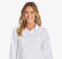 The Taylor Jacket is your new best friend for fresh, easy style. Made from a breathable cotton and linen mix in crisp white denim, it’s light and comfy with just the right structure. Eye-catching contrast stitching and two chest pockets add a cool, modern twist, while the classic collar and buttoned front keep it timeless. Perfect for layering over everything—from flowy dresses to casual tees,